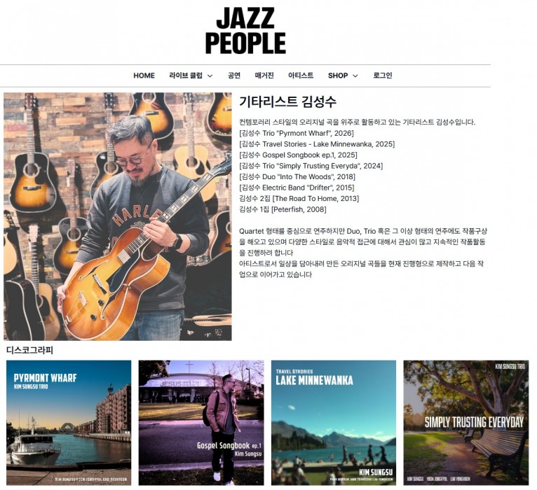 컨템포러리 스타일의 오리지널 곡을 위주로 활동하고 있는 기타리스트 김성수입니다.