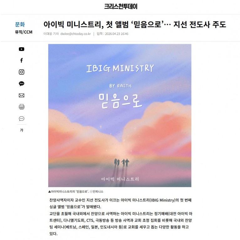 [기사] 아이빅 미니스트리, 첫 앨범 ‘믿음으로’… 지선 전도사 주도(크리스천투데이)